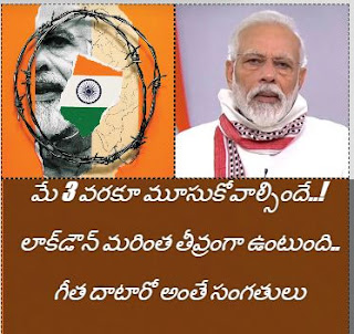 వచ్చే నెల 3 వరకూ లాక్డౌన్..అంటే దేశంలో అన్నీ బంద్...కంటైన్మెంంట్ జోన్లు...రెడ్ జోన్లు..గ్రీన్ జోన్లు ఏమీ అన్నీ మూసేయాల్సిందే..ఐతే కాస్త మెరుగ్గా ఫలితంచూపిస్తే మాత్రం ఏప్రిల్ 20 తర్వాత అంటే మరో వారం తర్వాత కాస్త వెసులుబాటు కల్పిస్తానని ఊరడించాడాయన...
